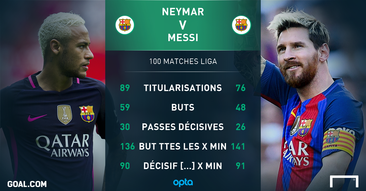 En réalité, il fait même mieux que son coéquipier argentin. Ce dernier a beau être le meilleur réalisateur de la Liga en activité, après 100 rencontres jouées, il ne présentait pas des chiffres aussi séduisants que Neymar comme l'indique Goal. Au niveau des buts (48 contre 59) ou des passes décisives (26 contre 30), son total était inférieur. Des déductions à en tirer ? Il y en a au moins une qui émerge comme incontestable : l'adaptation de la star auriverde à ce championnat est au moins aussi réussie que celle du quintuple Ballon d'Or.